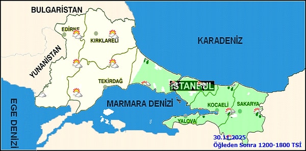 İstanbul için güncel meteorolojik uyarı bulunmazken İstanbul genelinde parçalı ve çok bulutlu bir havanın hakim olacağı, kentin doğusunda ise günün aralıklı sağanak ve gök gürültülü sağanak yağışlı geçeceği tahmin ediliyor. Rüzgarın hafif ve orta kuvvette esmesi bekleniyor.