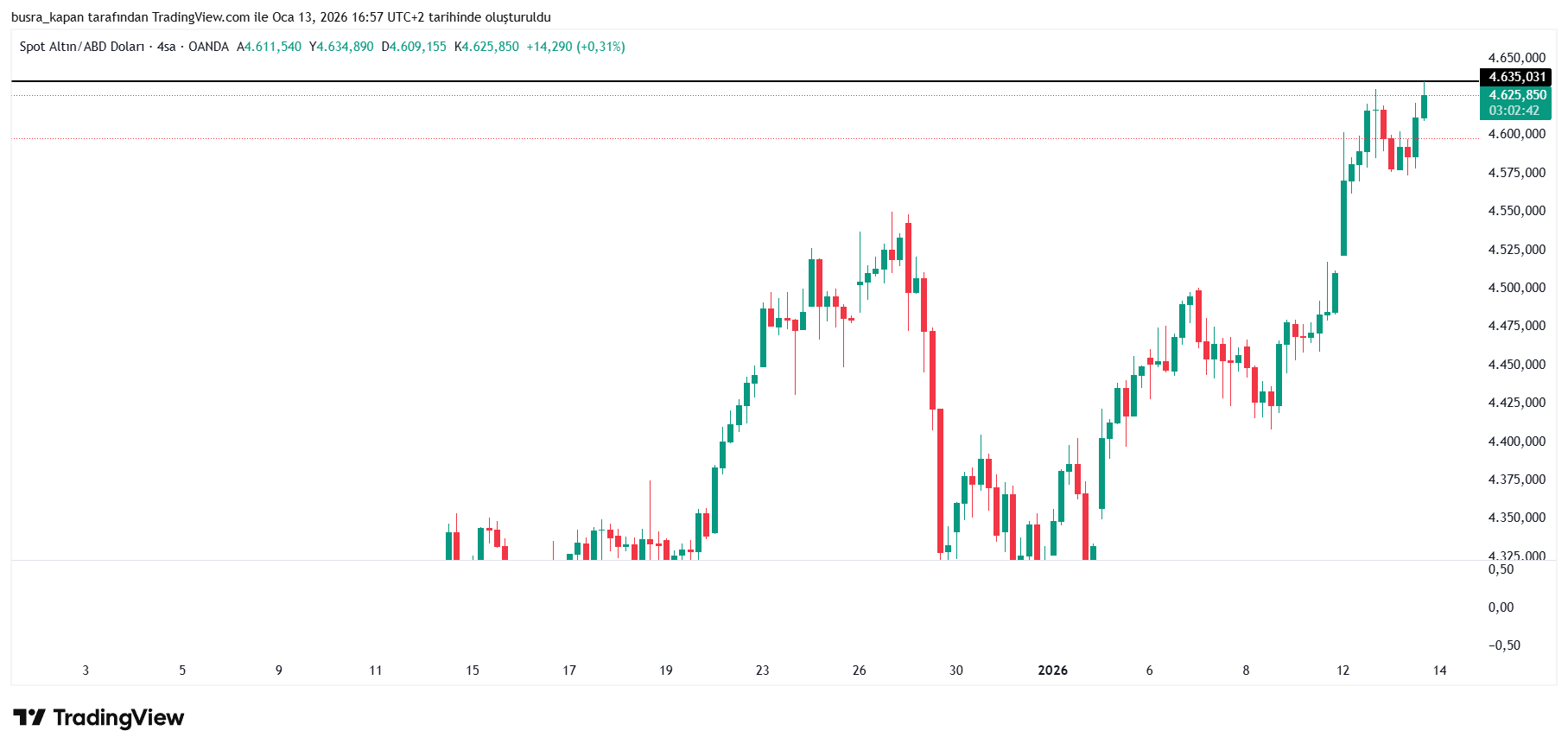 Önceden ons altın 4.601 dolar civarında bulunurken, veri sonrasında 4.635 dolara yükseldi.
