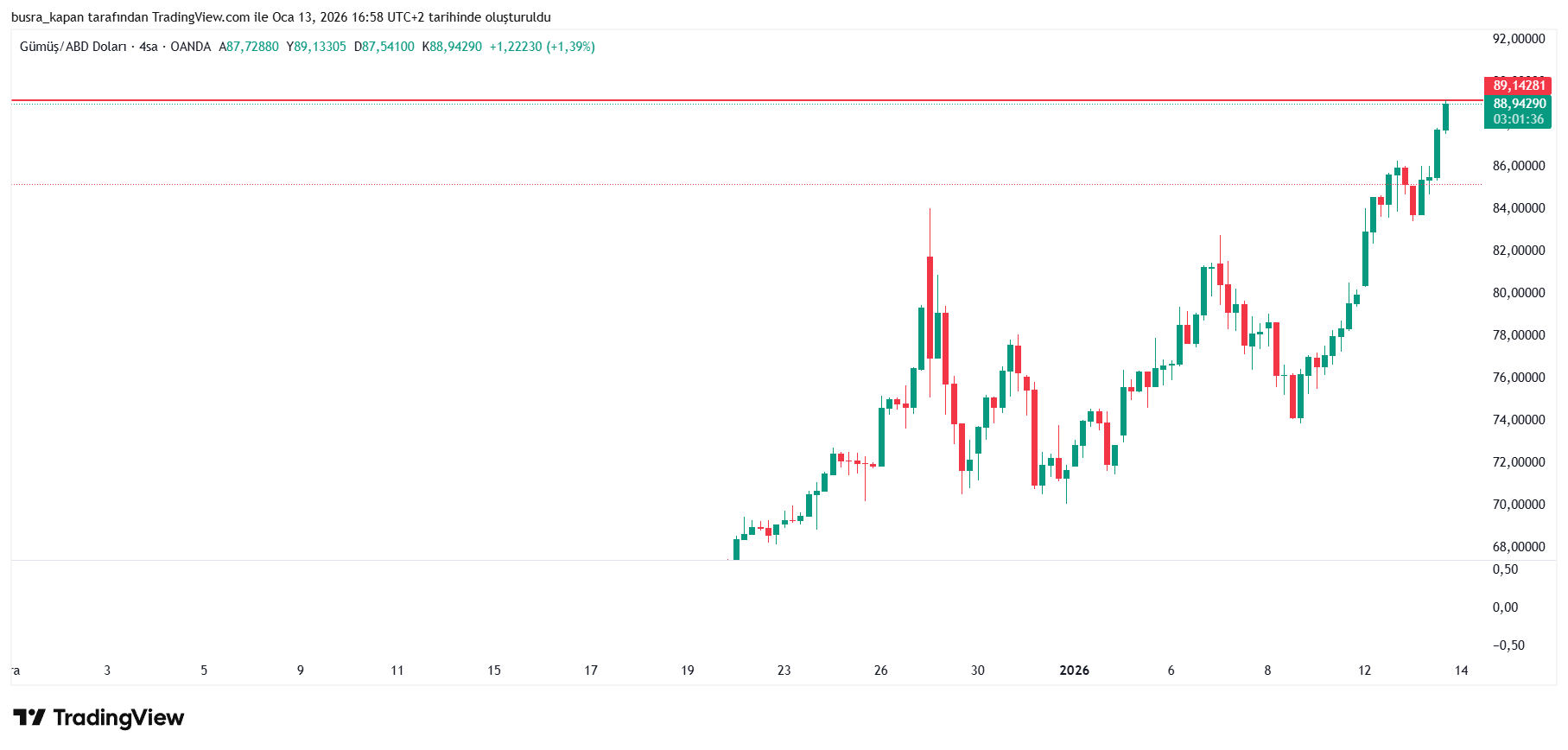 Ons gümüş ise veri öncesinde 86,77 dolardayken, veri sonrasında 88,19 dolara yükseldi.