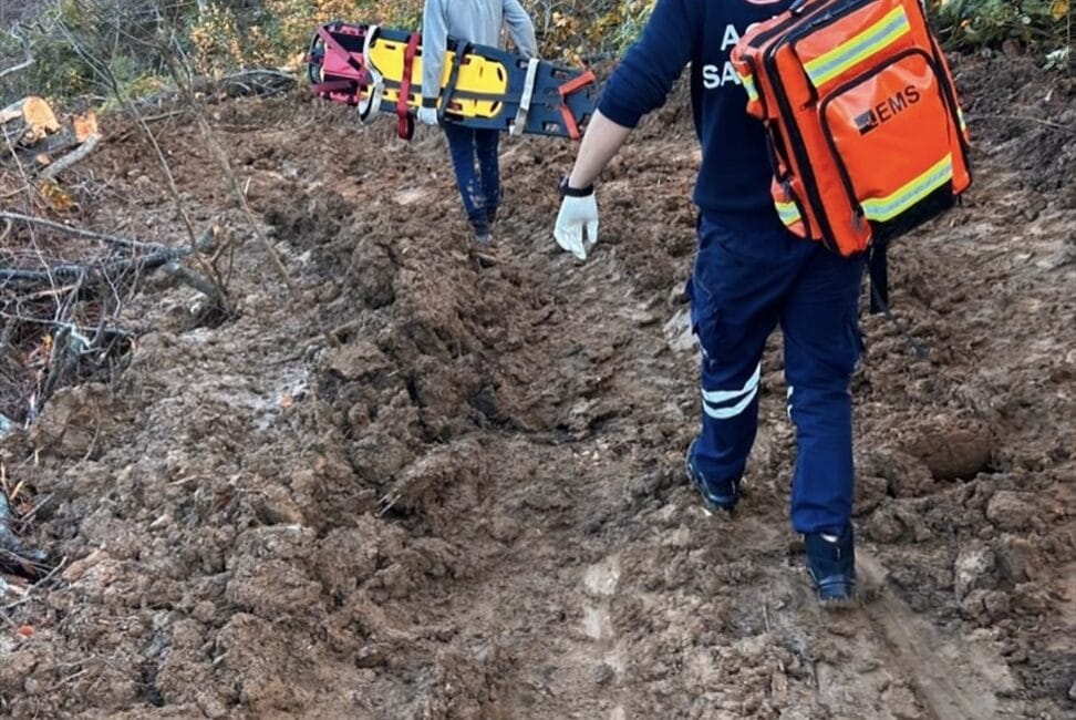 Ambulansın orman arazisinde hareket edememesi nedeniyle ekipler, yaklaşık 700 metre balçık ve çamurda yürüyerek olay yerine ulaştı.