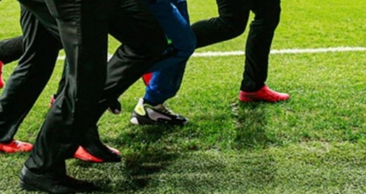 Futbolcular kavgaya tutuştu taraftarlar sahaya girdi!